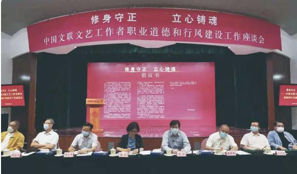 8月24日,“修身守正 立心铸魂——中国文联文艺工作者职业道德和行风建设工作座谈会”在京举行。座谈会上,与会艺术家代表向全国文艺工作者发出《修身守正 立心铸魂——致广大文艺工作者倡议书》(以下简称《倡议书》),倡导广大文艺工作者严于自律,常怀敬畏之心;勤于学习,提高认知水平;悉心创作,坚守艺术理想;秉持初心,践行德艺兼修,并在《倡议书》上签名。青年演员周冬雨、杜江宣读了《倡议书》。